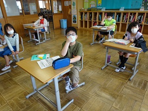 今日で5月の分散登校が終わりとなります。来週からは6月。6月からは待ちに待った3ヶ月ぶりの給食が始まります。簡易なメニューからスタートします。配膳方法や会食の仕方など十分に配慮していきます。