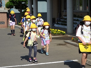 通学班編制も行いました。交通事故に気をつけて,また距離を保って登校することなどの約束を確認しました。