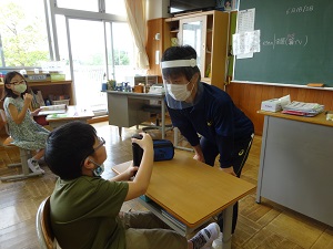 またフェイスガードを使った感染予防策も始めました。子ども達の安全を願っています。