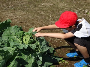 どうやらモンシロチョウの幼虫や卵を探していました。一生懸命探して,見つけることができました。理科は成長を観察するのでなかなかおうちでは難しい学習の一つです。