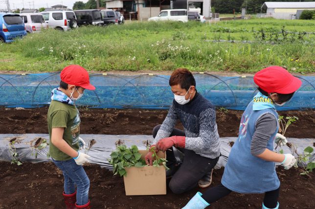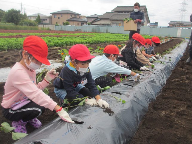 2年生が21日と22日に野菜の苗植えを行いました。先生に教わりながら,なすやトマト,キュウリやサツマイモなど先生に教わりながら植えました。大きく育ってくれるのが楽しみです。