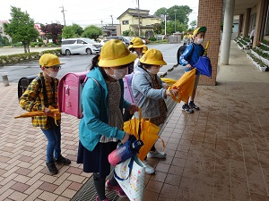 きょうも分散登校がありました。きょうはB班の登校です。朝のうち雨が降っていたのですが,下校する頃には,天気は回復しました。また昨日に引き続き通学班編制を行いました。これで正式な通学班が完成しました。