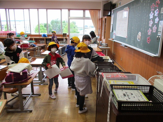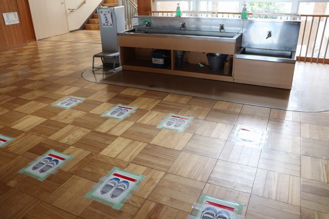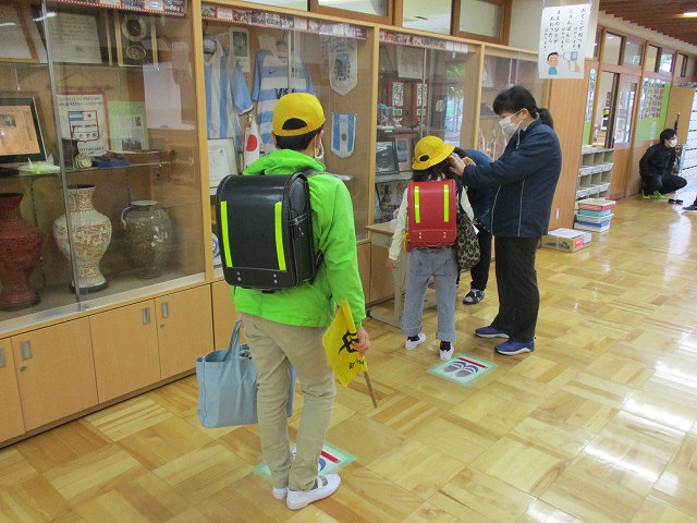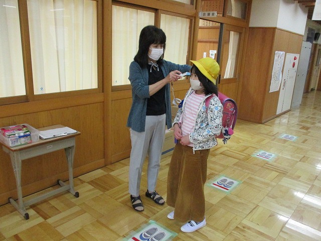 コロナウイルスの影響で臨時休校が続いていましたが,本日,令和2年度がやっとスタートしました。先生方も子どもたちが安心・安全に学校生活が送れるように準備を行い,子どもたちの登校を見守りました。コロナウイルスの予防の観点から,2グループに分けての分散登校になってしまいましたが,本日はAグループの子どもたちが登校しました。子どもたちは会議室前で,ソーシャルディスタンスを保ちながら非接触式の検温器で熱を測定してもらい,熱がないことを確認してもらうと,ほっとした表情で教室に向かい,担任の先生と対面し,宿題等の提出を行いました。