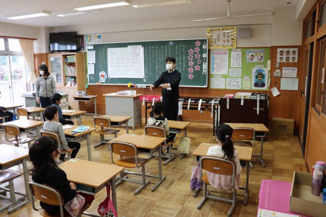 担任の先生のお話が終わった後で,校長先生が各教室を回ってくださり,コロナウイルスに対する注意事項や,新年度に頑張ってほしいこと等のお話をいただきました。